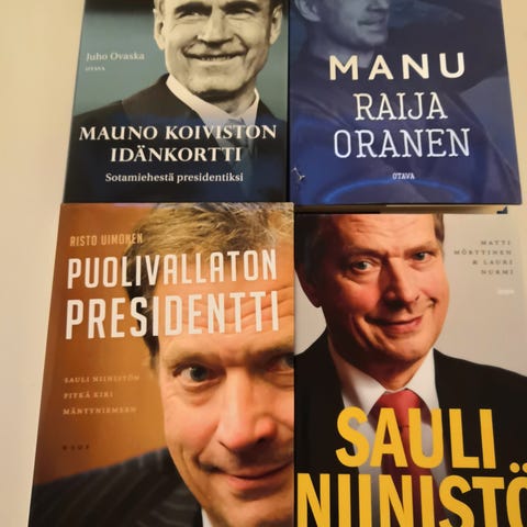 Lauri Haatajan, Paavo Frimanin ja Gummerus Kustannus Oy/Ajatus Kirjat työstämä Presidenttikirja. Ilmeikäs ja teräväpiirteinen kokoelma pienoismuotokuvia Suomen presidenteistä K.J Stählbergistä Tarja Haloseen.Painovuosi 2001, sivuja 206. Kirja täysin käyttämätön. Postitus päälle