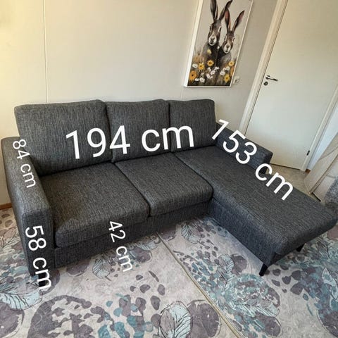 Istuin korkeus lattiasta 40 cm. Istuimen leveys 180cm. Istuin syvyys 70cm ilman selkänojatyynyjä. Selkänoja tyynyn korkeus 45cm