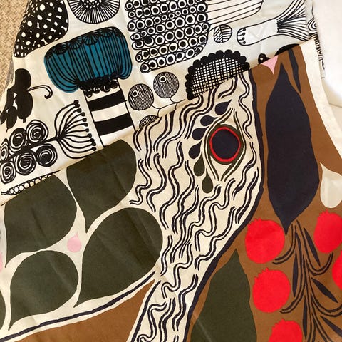 2kpl Marimekon kangaspalat 60-luvun kankaista. Ylempi Kaivo, alempi Iso Harlekiini. Kaivon korkeus 11cm, Iso Harlekiini 14cm. Kankaita ei ole pesty. 100% puuvillaa.