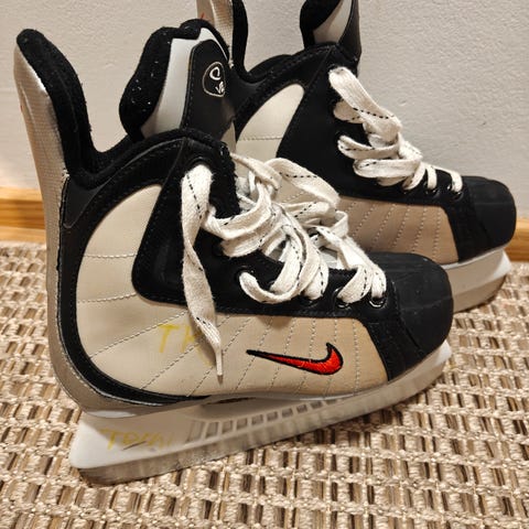 Myydään lasten Nike Ignite 5 luistimet. Kokoja en löytänyt mistään, joten laskin ne itse taulukosta pohjallisen pituuden perusteella, eli 37,5. Pohjien reunat ovat hyvin kuluneet, mutta tämä ei vaikuta käyttöön millään tavalla(kuvassa näkyy). Mielummin nouto Naarajärveltä.