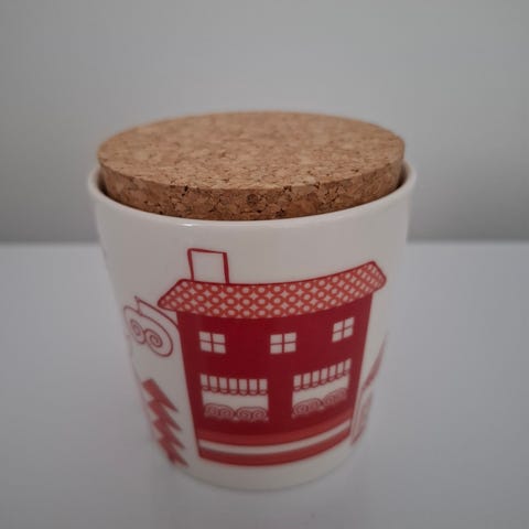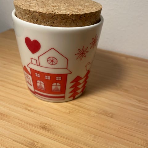 Arabia Joulukylä purkki ja korkkikansi. (Käyttämätön tarroineen)
