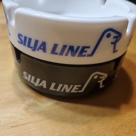 Hupaisuus sikseen, eli siis, myynnissä on nyt oikein hyvässä kunnossa oleva Silja Linen klassisella valkealla värillä valmistettu vanha tuhkakuppi; vanhalla kunnon Silja Line -logolla. Mahtavaa. Eikä tarvi keuhkojaan alkaa savuttamaan pahuuden astmasyöpäkeuhkotautiallergiatupakalla tämän takia, jos ei polta, kun tämä sopii vaikka pikkunippelikipaksi. Myös musta versio tästä löytyy minulta myynnissä.