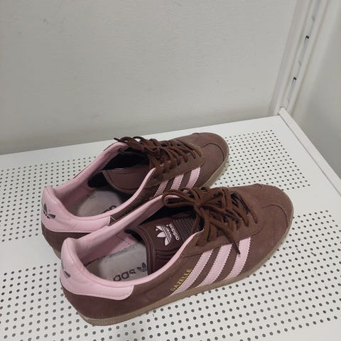 Myydään Adidas Unisex Gazelle -tennarit. Käytetty vaan 1–2 kertaa. Väri: Cloud White / Shadow Red. Kivat kengät, mutta liian pienet mun jaloille niin ovat jääneet käyttämättä.