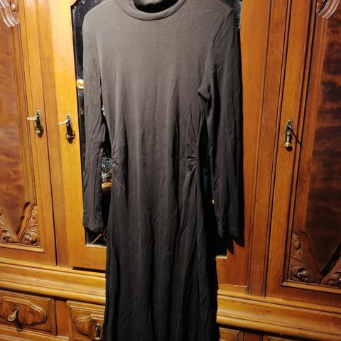 Vähän käytetty kaunis pitkähihainen maksimekko 100% viskoosia. Mustalla pohjalla kaunis kukkakuvio. Sivuissa taskut.