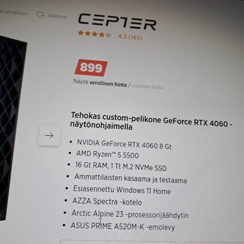 Muut ( näyttö 144hz, ohjain kuulokkeet lisämaksusta).