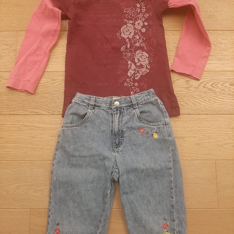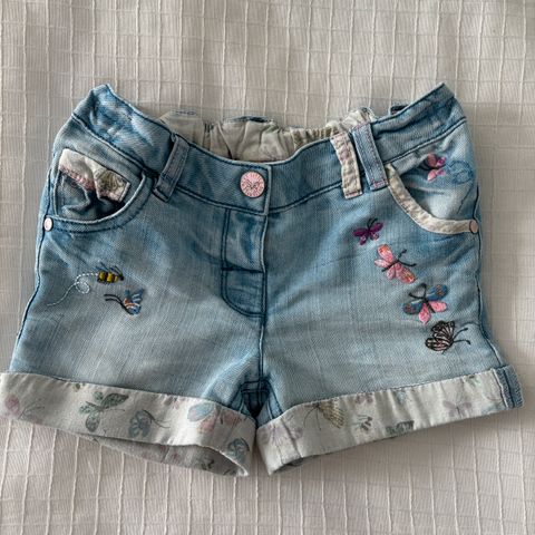 Tyttöjen farkkushortsit 116 cm. Polvipituinen malli.