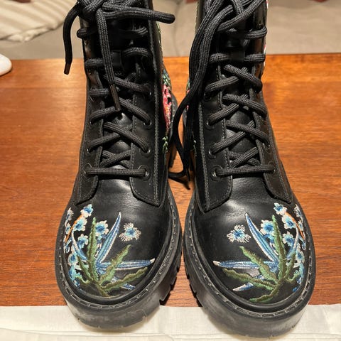 Myydään vähän käytetyt jenkeistä ostetut Kenzo kengät koossa 38. Väri metallinen (vihertävän harmaa). Paras kapeaan jalkaan.
