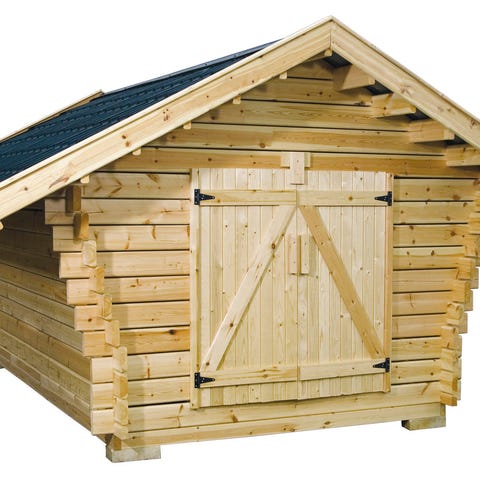 Isosti säilytytilaa eli 45m³ varastoa polttopuille ja työkaluille. Parruhirrestä tehty 4x9m harjakattoinen rakoliiteri suomalaisesta puusta. Hirret hintaan 2600€. Lisähinnasta mm. toimitus nosturiautolla 480-760€, puuosapaketti ovineen ja lattioineen 800€ ja kattopeltipaketti 980€.