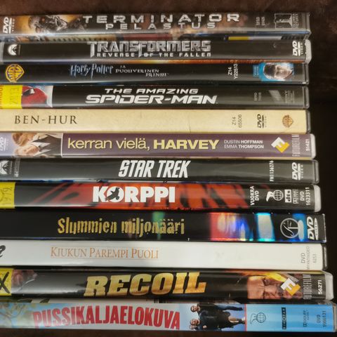 Myydään DVD elokuvia hintaan 4€ kappale. Kaikissa on suomenkielinen tekstitys. Kaikki levyt ovat naarmuttomia ja uudenveroisia. Yhden levyn postituskulut ovat 5€ paikkeilla, joten jos löydät listalta useamman kiinnostavan niin pakettina lähetys tulee huomattavasti edullisemmaksi.