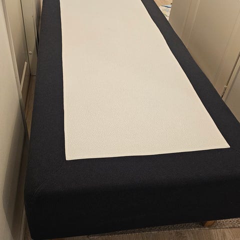 Vaalea runkopatja sänky.
