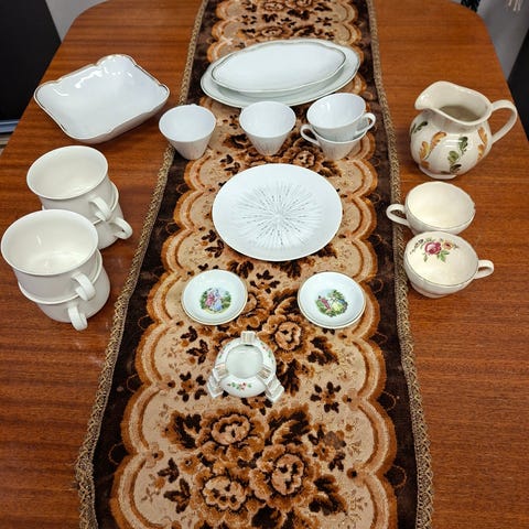 Vähäistä käytönjälkeä, ei säröjä mutta kultaus haalistunut.