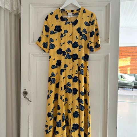 Vintage: Carolin Muotihovi Kesäinen Keltainen Kukkakuvioinen Mekko / Koko M