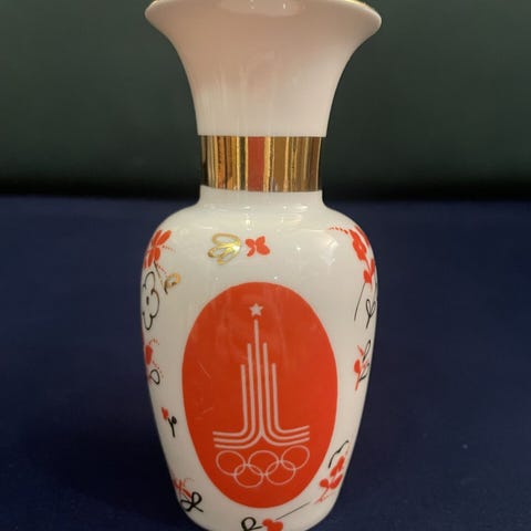Kukkakuvioitu koristevaasi ja kannellinen koristeastia. Vaasi on kapea- ja korkeakaulainen, tummanpunaisella pohjavärillä ja monivärisillä kukka- ja lehtikuvioilla, yläreunassa kullanvärinen reunus. Kannellinen koristeastia on jalallinen, monivärisillä koristekuvioilla ja kullanvärisillä yksityiskohdilla varustettu pyöreä astia, jossa on irrotettava kansi. Sopivat sisustusesineiksi esimerkiksi hyllylle, lipaston päälle tai vitriiniin.