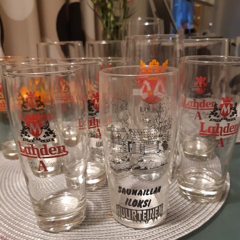 Retro olutlasit kaksi kpl. Hinta yhteensä 5€.