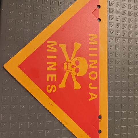 Erilaisia miinoja kuvattuna. Militaria. Koko 30x42cm. Alakulmassa pieni taite.