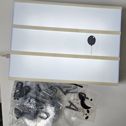 Kaunis mintunvihreä lightbox ja mukaan saa kirjaimet joilla voi tehdä haluamansa tekstin. Toimii pattereilla. Mahdollista hankkia myös seinäjohto.
