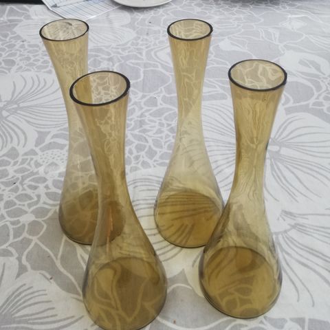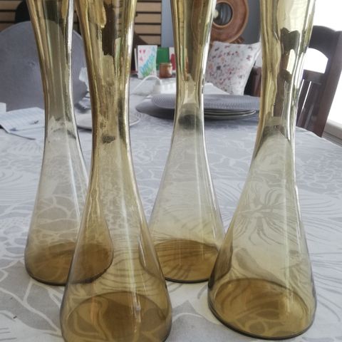 Myynnissä neljä korkeaa (27cm) maljakkoa, ns. yhden kukan maljakko. Pohjan leveys 9cm.