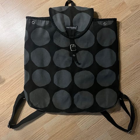 Hyväkuntoinen Marimekko Lolly Kivet reppu, pohjassa pientä käytön jälkiä on.