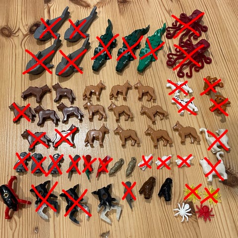 Erilaisia Lego Eläimiä. Eläimet hyväkuntoisia käytettyjä. Toimitus: haku / lähetys. Maksu: käteinen tai tilisiirto, Lähetyskulut ostajalle. Lähetän osat kun rahat näkyy tilillä.