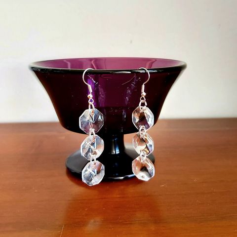 Korvakorut Kristallikuutio. Koruosan korkeus n. 5 cm + koukku.