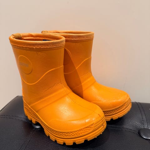 Siistissä kunnossa olevat violetinpunaiset kumisaappaat.