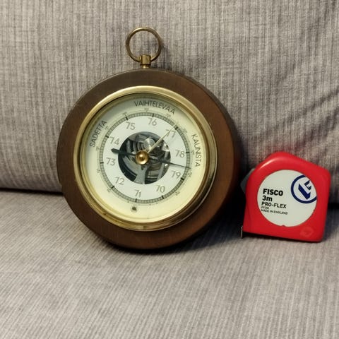 Vanha laskutikku teak-kotelossa. Kulumaa ja runsaasti käytönjälkiä. Kotelon toisesta päästä lohjennut pala pois sekä kannen sulkeutumimekanismi ei toimi. Pysyy kuitenkin kiinni esim. kuminauhalla. Kotelon pituus 31 cm.