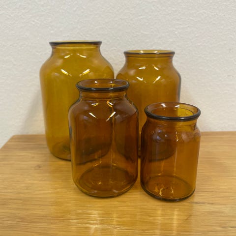 Myydään ruskeita pulloja/maljakoita/apteekkarinpulloja