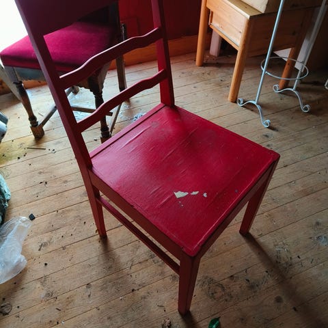 Täysin ehjä ja kaikin puolin kelpo tuoli.