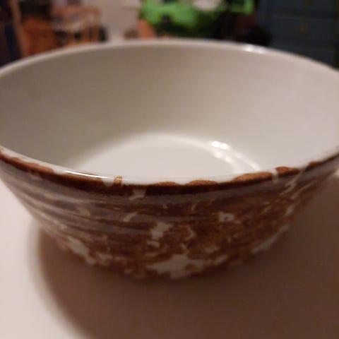 Arabia soppakulho Siniruutu. Valkoinen malja jossa siniruudullinen koristemaalaus. Vuosi, 1949-51. Käsinmaalattu.