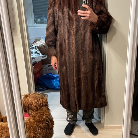 Myydään uudenveroinen turkistakki. Koko on L/XL.