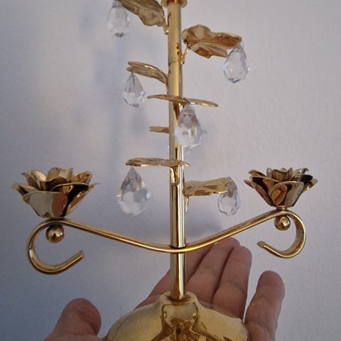 Kynttilänjalka, kullattu, koristeet kristallia