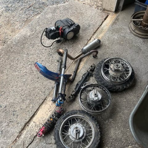 Löytyisi rungosta irti leikattuna skootterin etupää ja myös pari vannetta lisää johonkin mopoprojektiin esim.