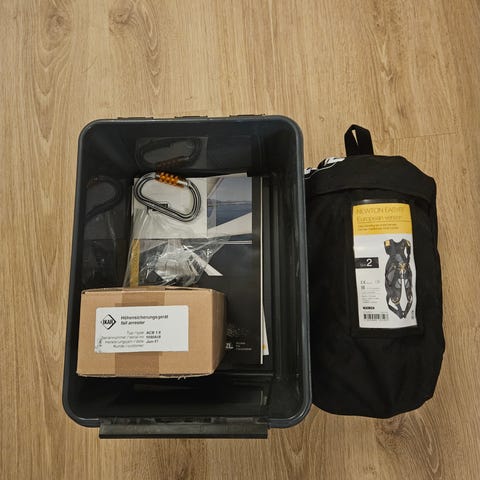 Uusi setti, mukana kaikki mitä laatikossa on,valjaat, liitosköysi, lista näkyy kyljessä, ja
