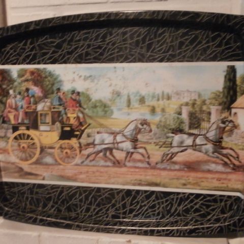 Peltitarjotin 5. Kaunis mustapohjainen vanha tarjotin, kukkakimppu