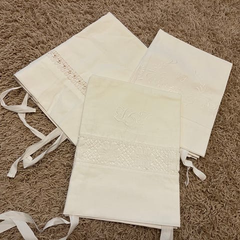 Vanha tyynyliina päätypitseillä 44 cm x 78 cm