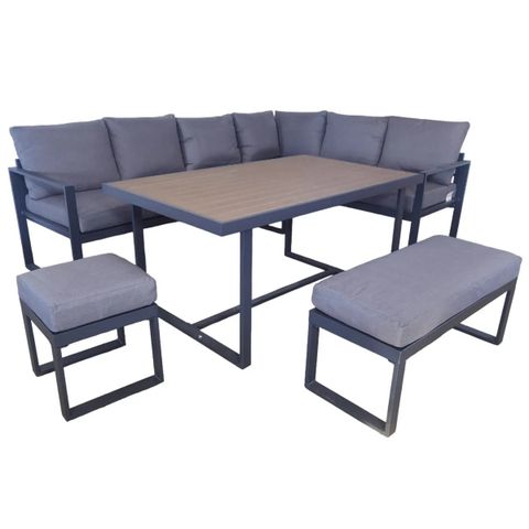 POHJOLA GARDEN Metalli Kulmasohvaryhmä ja Puutarhapöytä Ulos, MARIA