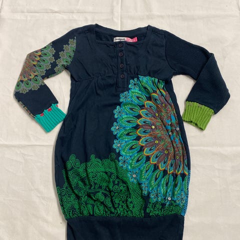 DP…am merkin sininen pitkähihainen ohutta puuvillakangasta oleva mekko tai tunika nepparikiinnityksellä. Koko n. 110 cm.