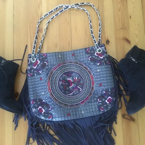 Kaunis, sininen bling/bling keinonahkalaukku ja siihen sopivat avokkaat niittikoristeinen, koko 39. Laukkua on käytetty jonkin verran, mutta on siisti. Avokkaat ovat uudenveroiset. Yhteensä 10€+postikulut.