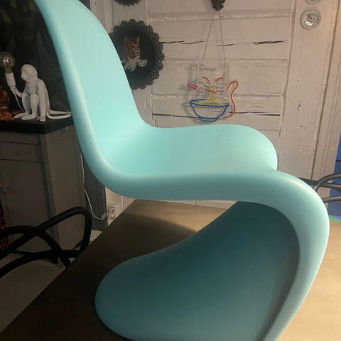 Vihreä Panton junior -tuoli vuodelta 2017. Siistissä kunnossa, ei naarmuja tai lohkeamia.