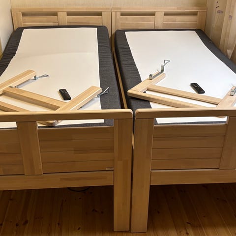 Koottu, käyttämätön seniorisänky moottoripohjalla, nousutuella, laidalla ja patjalla odottaa uutta omistajaa. Nousutuki ja laita sängyn alla, ei kiinnitettynä. Hinta oli ostettaessa 1250e, nyt lähtee halavalla.