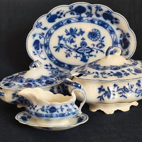 Kaunis englantilainen setti - kastikekannu ja lautanen.