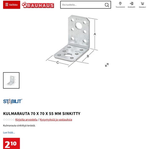 Kulmarauta 25 x 27 x 42 mm, sinkki 0,70 €