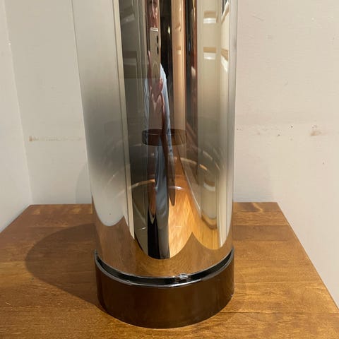 Lyhty on pulveri pinnoitettua metallia, jossa on lasimalja. Lasi on irtonainen.