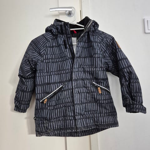 Siisti, käytetty kunto. Jonkin verran tummentumaa paikoitellen. Muuten ehjä, mutta pienen reiän löysin taskun päältä, tästä kuva. Vetoketju toimii hyvin.