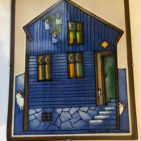 Myydään vanha Arabian Heljä liukko-sundström taulu lintujen talo. Hyväkuntoinen ehjä, muutama värivirhe tai kuluma löytyy, taulu on vanha. Leveys n. 20,5cm, korkeus n. 25,5cm.