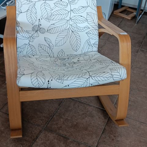 Kangaspäällysteinen nojatuoli.