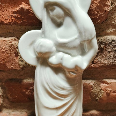 Ihastuttava italialainen Madonna-reliefi 1900-luvun puolivälistä 💫✨. Kipsiä, koko n. 12x22 cm. Tässä on hieman ajan tuomaa kulumaa/lohkeamaa, mikä näkyy kuvassa.