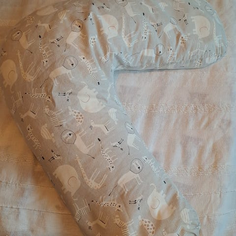MiniMys imetystyyny vaaleanpunaisella pestävällä päällisellä. Vähällä käytöllä ollut, mutta muotoilunsa puolesta palveli hyvin tarkoitustaan.