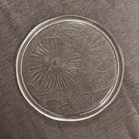 Lasilautanen, hieman ylöspäin nousevat reunat 20 x 20 cm.