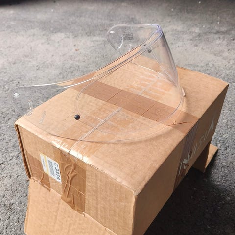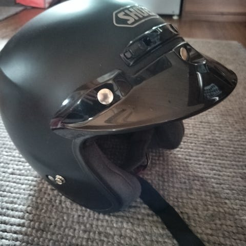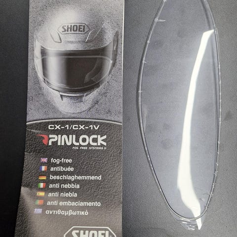 Hyväkuntoinen kirkas varavisiiri kotelosuojassa. SHOEI, Model CW-1 Nouto/käteinen